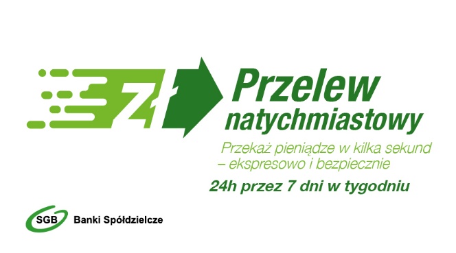 Niniejszy materiał ma charakter informacyjny i nie stanowi oferty w rozumieniu Kodeksu cywilnego. Szczegółowe zasady realizacji przelewów natychmiastowych, w tym limity i opłaty, określone są w regulaminie oraz taryfie prowizji i opłat właściwego banku spółdzielczego.